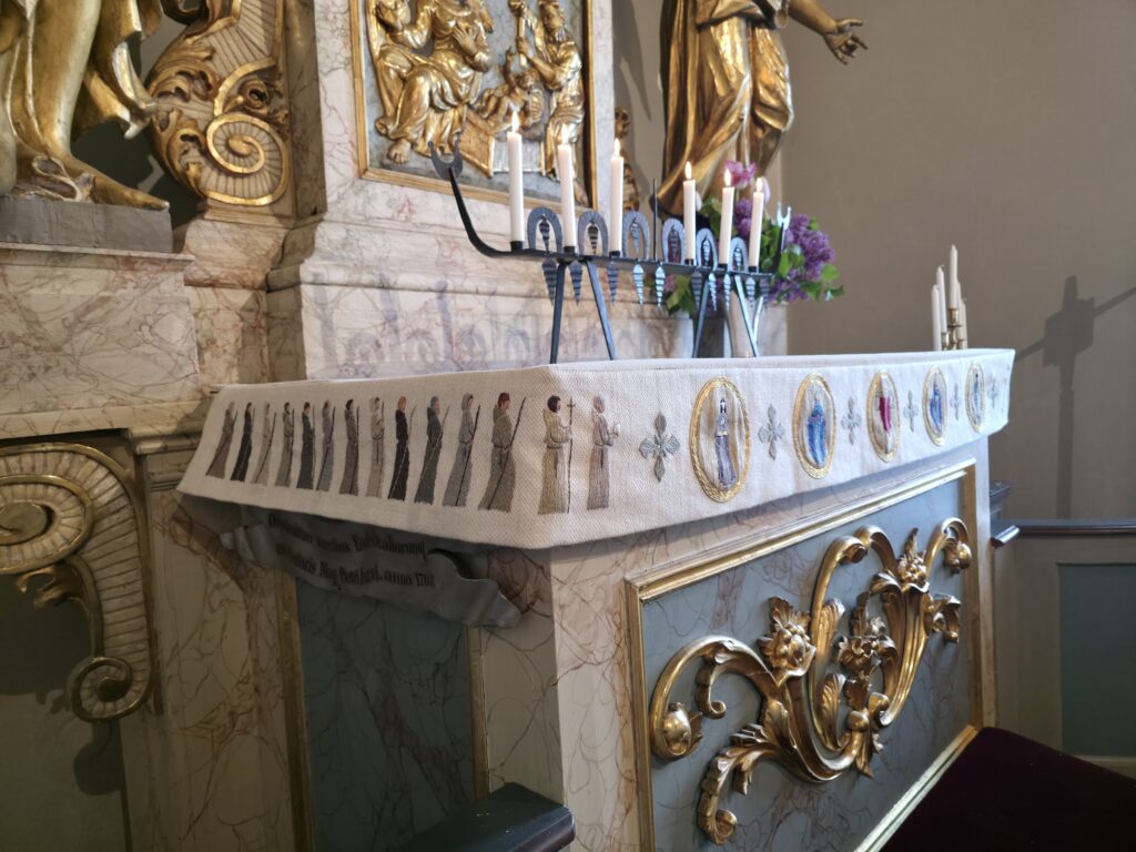 Alterduken er av lin. Den symboliserer likkledet av lin som Jesus ble svøpt i etter sin død