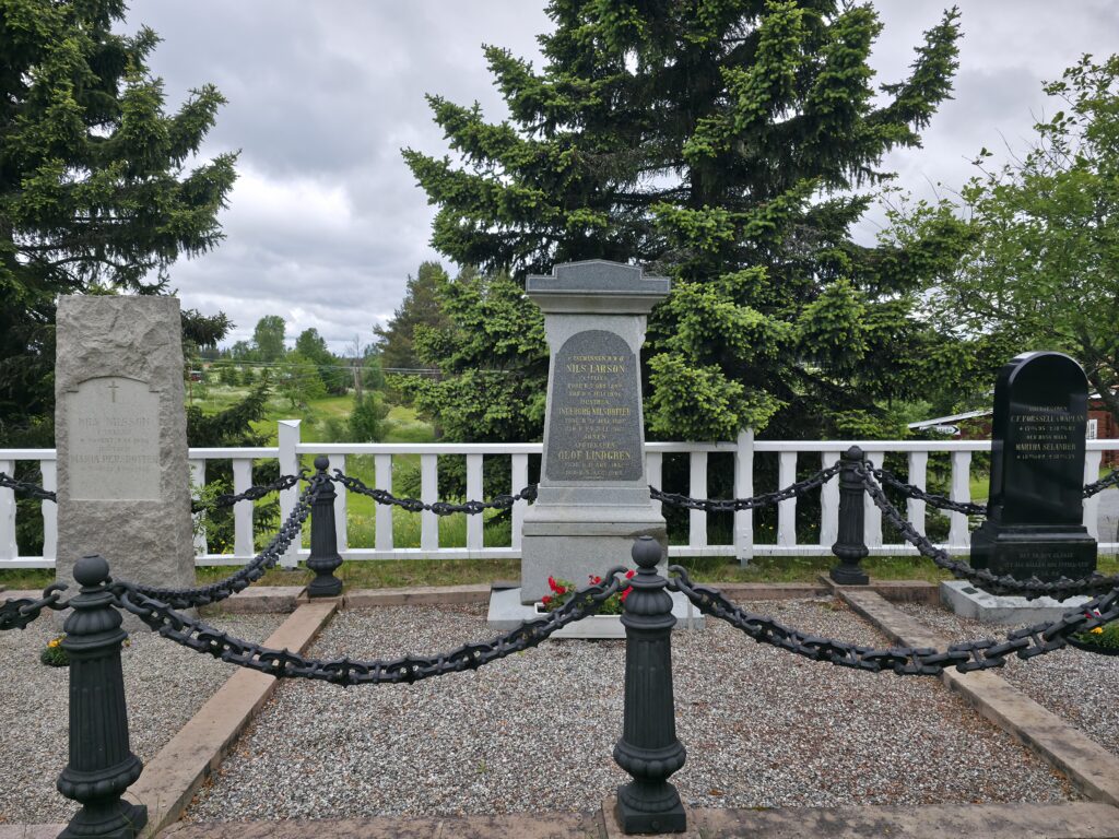 Nils Larson (gravsteinen i midten) var bonde og politiker fra Tullus. Larson representerte Jämtland i den svenske riksdagen. Larson, født i 1822, var særlig kjent for å ha jobbet for å bedre forholdene for bøndene i Näskott-området