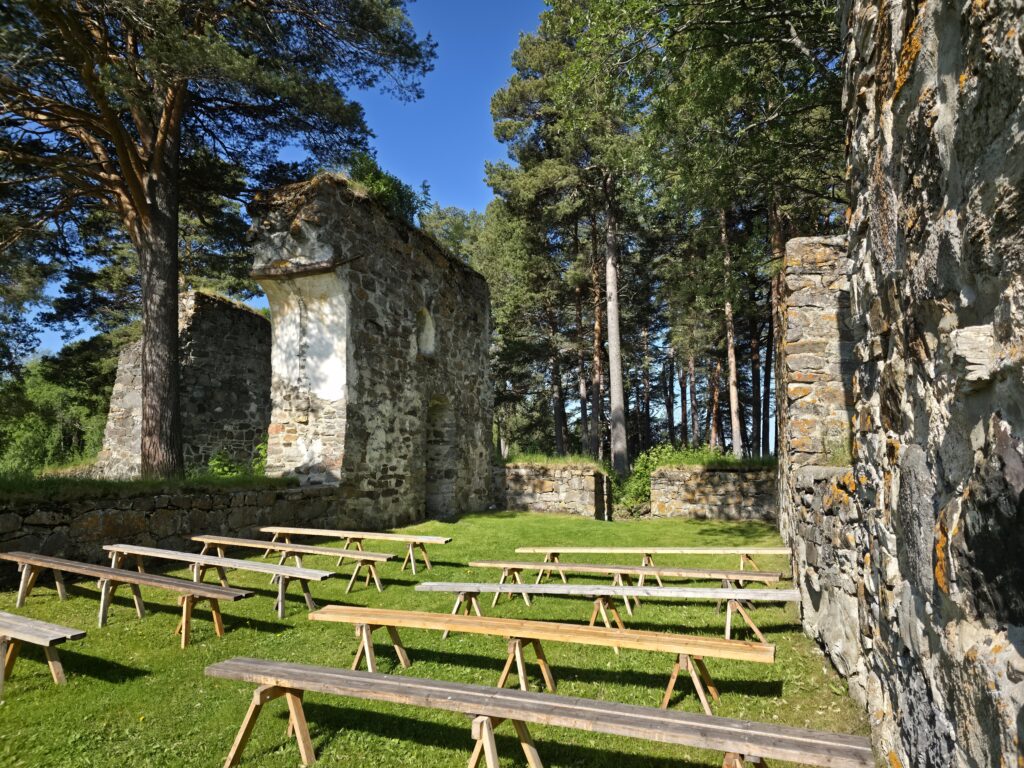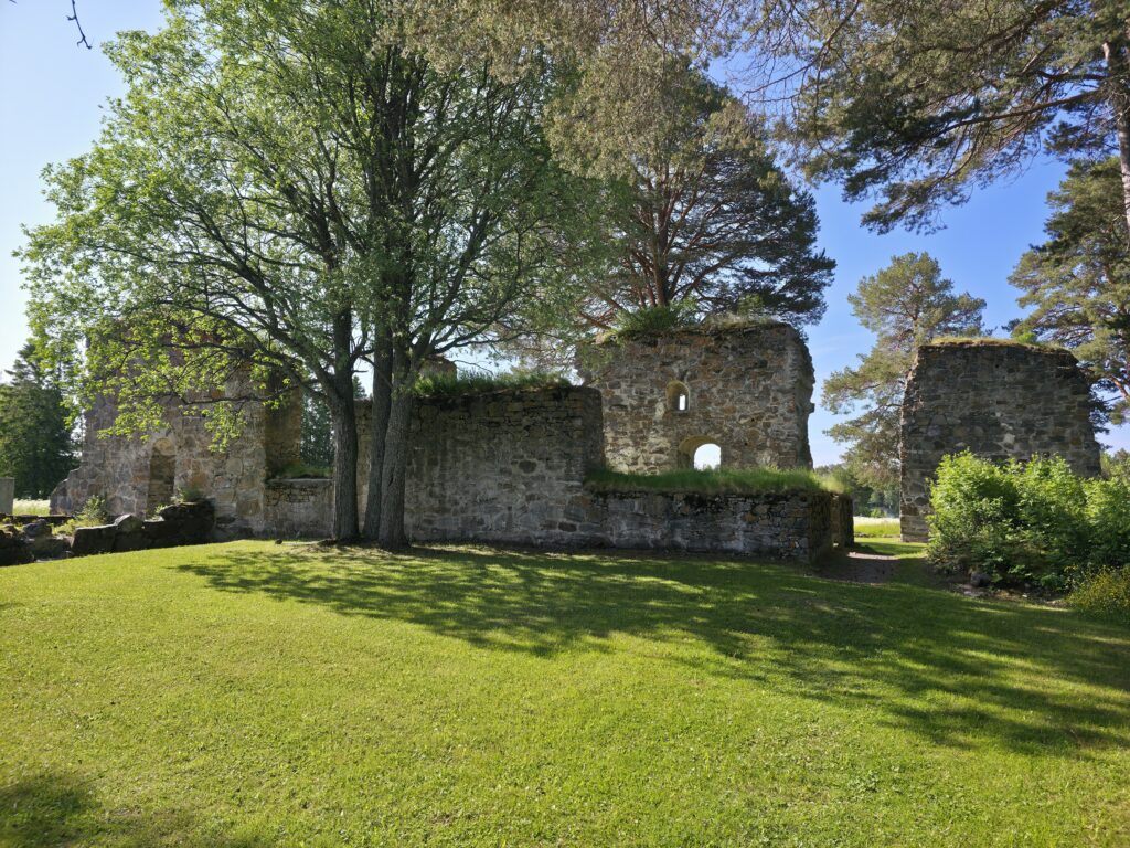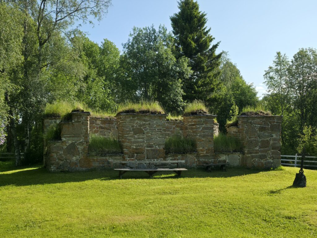 Marieby kirkeruin. Det har vært kirke på denne plassen i mist 500 år. De eldste delene av bygningen er trolig fra 1300-tallet