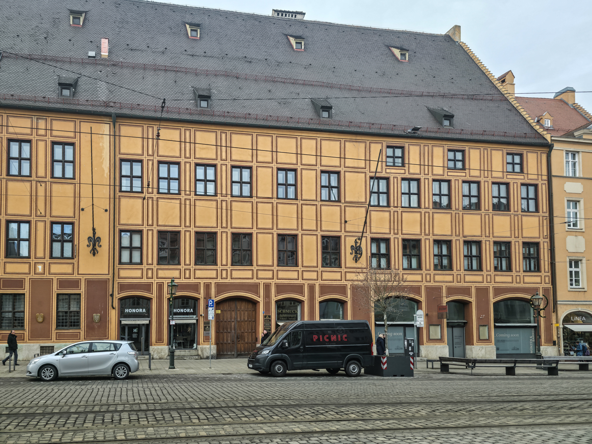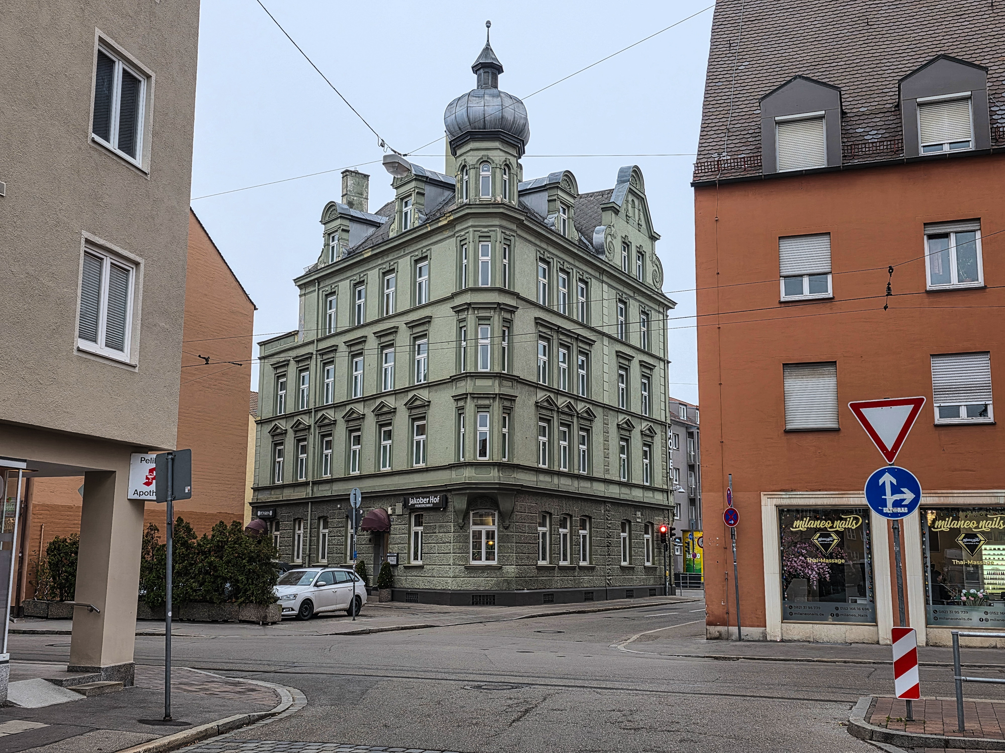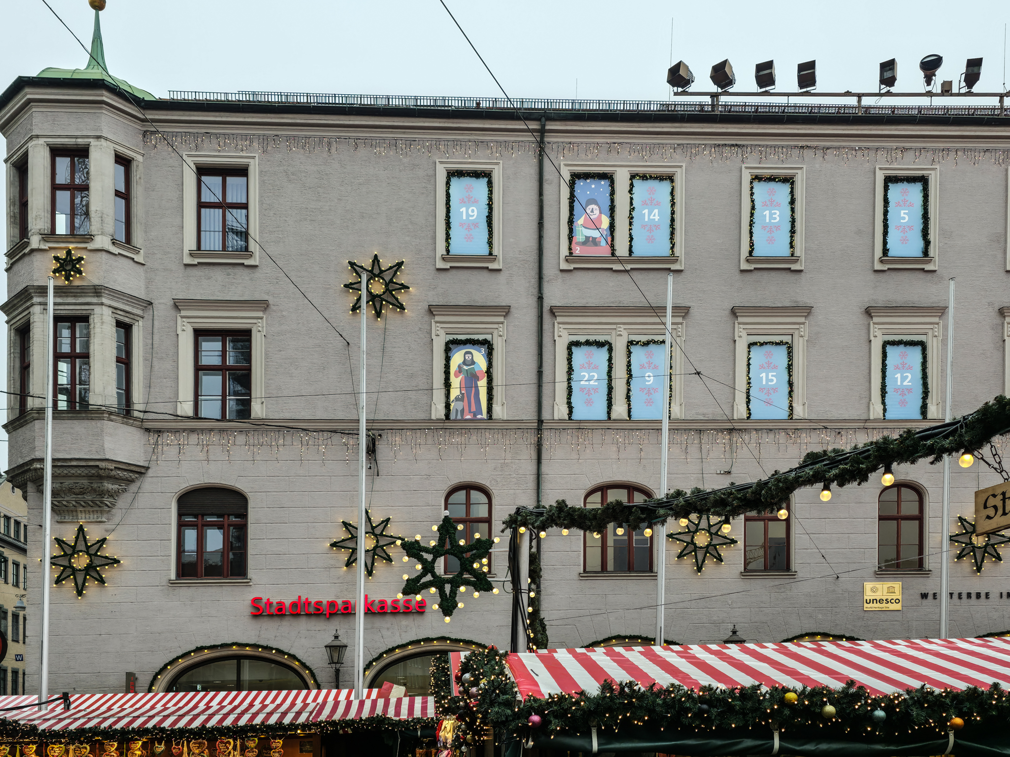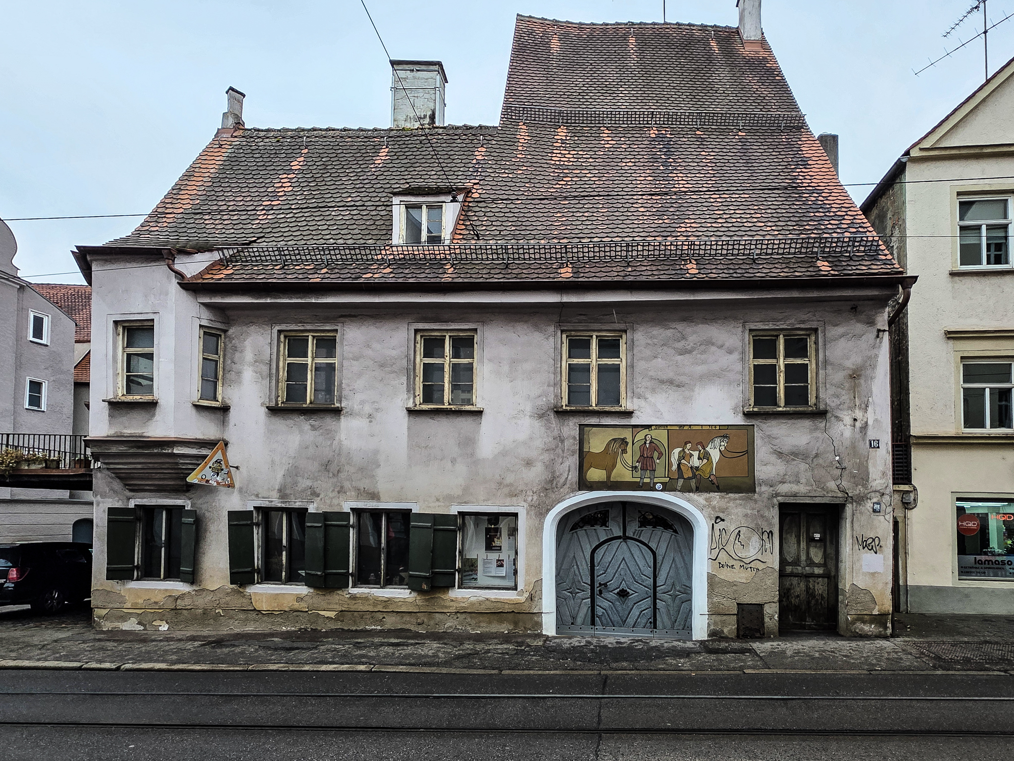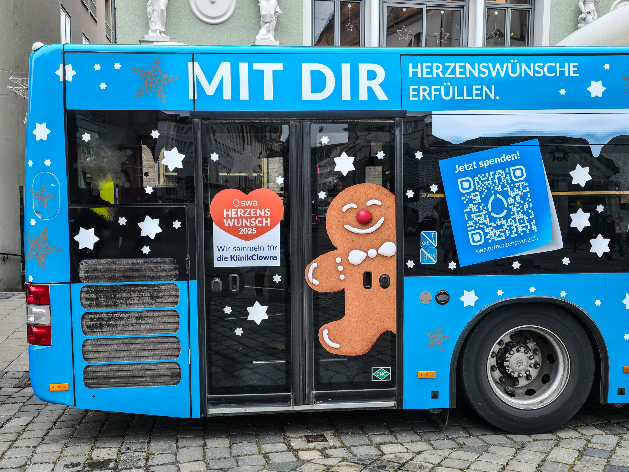 Augsburg er en by i det historiske landskapet SchwabenForfatteren, dramatikeren og poeten Eugen Bertolt Brecht (1898–1956) vokste opp i en middelklassefamilie i Augsburg. Utenfor Brecht-huset, stedet hvor Bertolt Brecht ble født 10.februar 1898, traff vi denne fargerike karen. Han omtalte seg selv som «kongen av Augsburg»Jakobertor er en del av den opprinnelige bymuren som omkranset Augsburg fra 1300-tallet. Jakobertor, oppkalt etter helgene Jakob, var en av flere porter i bymuren. Gjennom Jakobertor kontrollerte augsburgerne hvem som beveget seg inn og ut av bykjernenFargerike byggverk lyser opp i et grått og trist vinterlandskapAugsburg har fått navn etter Romerrikets første keiser. Gaius Octavius, også kjent som Octavian, tok senere navnet Augustus. Han ble født i Roma i år 63 BC og var adoptivsønnen til Julius Caesar. Augustus regnes som en av de mest betydningsfulle skikkelsene i antikkens historie. Han regjerte fra år 27 BC til år 14 AD. Statuen av Augustus står utstilit i Maximilian-museetEn rekke minner fra romertiden står utstilt nær domkirken i Augsburg. Konglene på øverste hylle kalles på tysk for pinienzapfen. Dette er kongler fra pinjetreet, middelhavstreet som gir oss pinjekjerner. I antikken symboliserte pinienzapfen «livet etter døden». Konglen har fungert som historisk symbol for Augsburg siden middelalderen. I dag ser man slike konglelignende symboler på en rekke steder i bybildetAugsburg har, som mange andre gamle byer, flere helgener. Sankt Ulrich er en av dem. Ulrich ble født i Kyborg i Sveits i 890 og døde i Augsburg i 973. Ulrich regnes som den første personen som ble kanonisert av en pave, noe som skal ha skjedd i 993. I 924 ble han utnevnt til biskop av Augsburg av den tysk-romerske keiseren Henrik Fuglefangeren. Ulrichs sarkofag er plassert i en av de store kirkene i AugsburgInnsamling av penger til sykehusklovneneElias Holl (1573-1646) regnes som den fremste renessansearkitekten i Tyskland. Han var født og levde det meste av livet i hjembyen Augsburg. Her ser vi hovedverket hans, rådhuset som ble reist mellom 1614-20. Nesten 200 mann sto for det praktiske arbeidet. De to tårnene ble innlemmet i byggverket i 1618. Innvendig har rådhuset en 550 kvadratmeter stor sal med vegger og tak dekket av bladgull. Rådhussalen er Augsburgs største turistattraksjonBåde rådhussalen og Perlach-tårnet var under renovering og derfor stengt da vi besøkte Augsburg. Det har stått vakttårn ved rådhuset siden 989. Dagens steintårn ble påbegynt i 1412 og betydelig påbygget av Elias Holl i 1614–16. Det 70 meter høye tårnet ble hardt skadet under andre verdenskrig og senere gjenoppbygget. Perlach-tårnet har vært stengt siden 2017 og skal etter planen åpne i ny drakt i 2027. Under reparasjonsarbeidet er kuppelen midlertidig plassert på bakkenDet årlige julemarkedet i Augsburg legges selvsagt til rådhusplassen. Her ser vi bankbygget Stadtsparkasse, med byens egen julekalender godt synlig i vindueneSt. Nikolaus, er en bispelignende religiøs skikkelse med røtter tilbake til middelalderen som besøker julemarkeder, skoler og hjem i førjulstiden i Sør-Tyskland. Nikolaus framstår som en klok og vennlig biskop med mitra, bispestav og kappe. Han er opptatt av omsorg, nestekjærlighet og omtanke. Der hvor Nikolaus bringer ro og vennlighet, følger også hans mørkere motstykke, Krampus. Sistnevntes oppgave er å minne de uskikkelige om å skjerpe segForfedrene til den berømte komponisten Wolfgang Amadeus Mozart kom opprinnelig fra Augsburg. Faren Leopold, også han en kjent musiker og komponist ble født i dette huset i Frauentorstraße i 1719. Han flyttet til Salzburg i 1737 for å studere musikkDen nord-østlige delen av den såkalte svenskemuren, er en godt bevart del av Augsburgs gamle bybefestning. Muren har fått navnet etter de svenske beleiringene av Augsburg i 1632, under trettiårskrigen. I dag er den et synlig minne om en dramatisk periode i byens historieI en nisje i svenskemuren fant vi steinfiguren, Stoinerna Ma. Figuren har opphav i et sagn som knytter seg til bakeren Konrad Hacker. Under beleiringen av Augsburg på 1630-tallet skal han med risiko for eget liv ha gått opp på bymuren og vist fram det siste brødet han hadde slik at de beleirende troppene ble overbevist om at Augsburg fortsatt hadde rikelig med mat. På det viset lurte Konrad de beleirende troppene og reddet dermed byenSt. Gallus-kapellet er sannsynligvis det eldste bevarte kirkebygget i Augsburg. Her oppe på Gallus-høyden hadde romerne tidlig anlagt en helligdom til ære for guden Merkur. Dagens kirke ble innviet da pave Leo 9 passerte gjennom Augsburg i 1051Augsburger Puppenkiste (Oehmichens Marionettentheater) er et tysk marionetteater som oppsto i enkel form under krigen og ble offisielt gjenetablert i 1948. Teateret holder til i Heilig‑Geist Spital, det gamle klosterhospitalet. Dukketeateret i Spitalgasse i Augsburg regnes i dag som et av Tysklands mest anerkjente og berømte teatreI ukene før jul viste Puppenkiste «Die Weihnachtsgeschichte», historien om Josef, Maria og barnet. Vi hadde sikret oss billetter til forestillingen før avreise. Figurene på dette bildet er fra en tidligere forestilling i marionetteteateretBobs bar ga oss et velfortjent pusterom mellom alle attraksjoneneFC Augsburg, grunnlagt i 1907, har siden 2011 vært et fast innslag i Bundesliga. Denne plakaten fant vi i en av byens sportsbutikker. Den helga vi besøkte Augsburg beseiret de Bayern Leverkusen på hjemmestadioen WWK ArenaRådhusplassen i miniatyr. På bildet ser vi rådhuset, Perlach-tårnet og resten av bebyggelsen som omkranser byens mest sentrale punktFlere tyske julemarkeder har de siste årene vært utsatt for terrorangrep med kjøretøy. I Augsburg hadde man derfor satt opp tunge, men flyttbare pullerter for anledningen. Barrierene ble midlertidig fjernet hver gang en av byens mange trikker skulle passere over torgplassenVeverhuset i Augsburg var laugshus for 