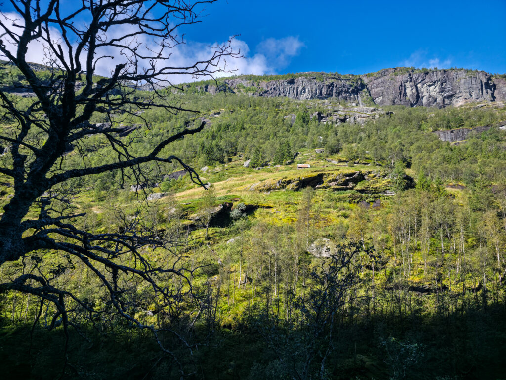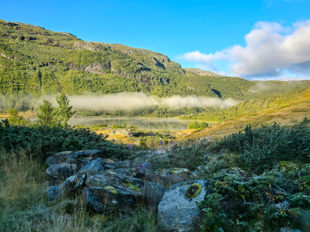 Vi er på over 800 meters høyde i fjellområdet Skarvheimen. Skarvheimen binder Jotunheimen sammen med Hardangervidda, og strekker seg geografisk fra Hemsedal til Aurlandsdalen.