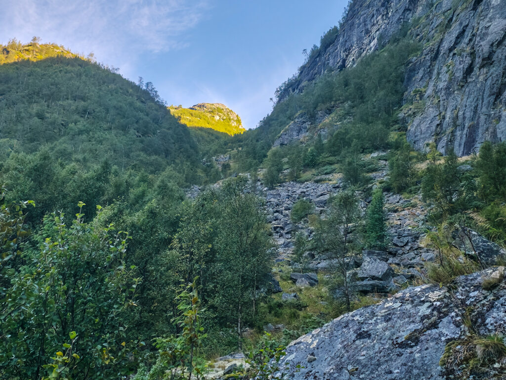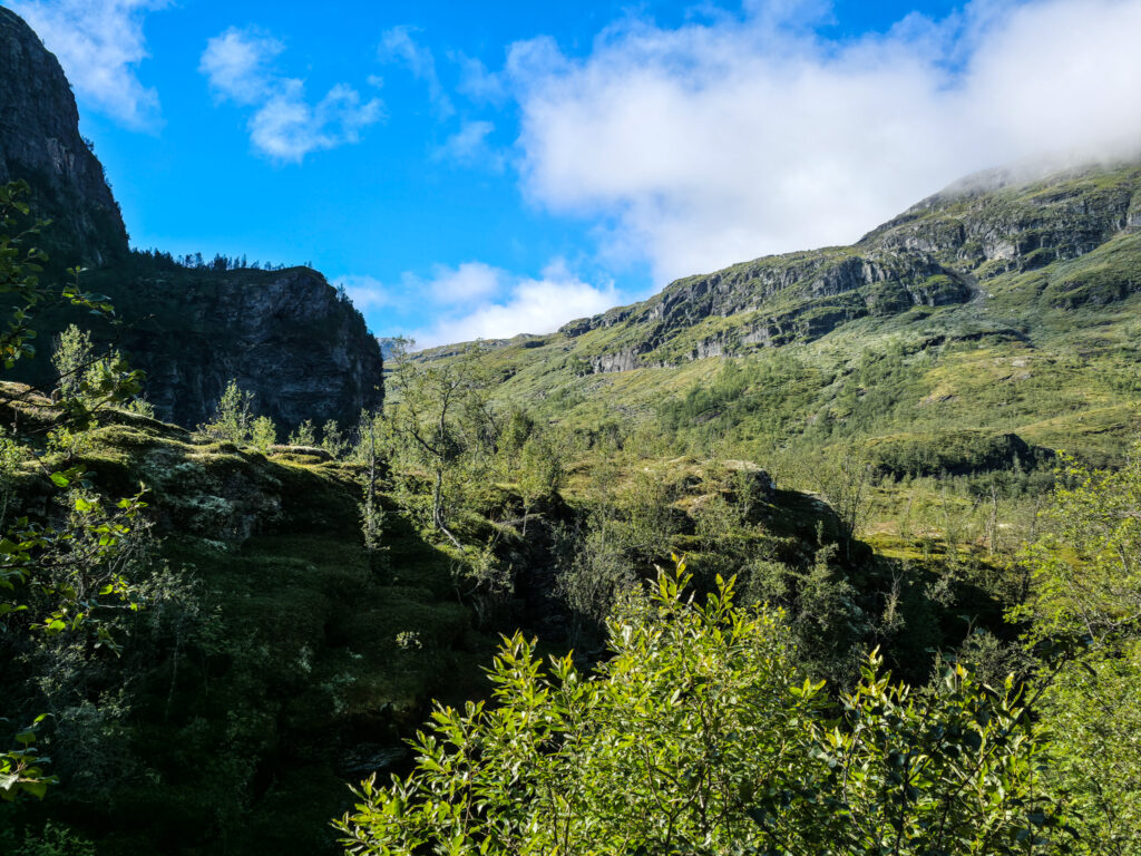 Dalen skjærer seg inn i det majestetiske terrenget. Fjellsidene reiser seg bratt opp fra dalbunnen