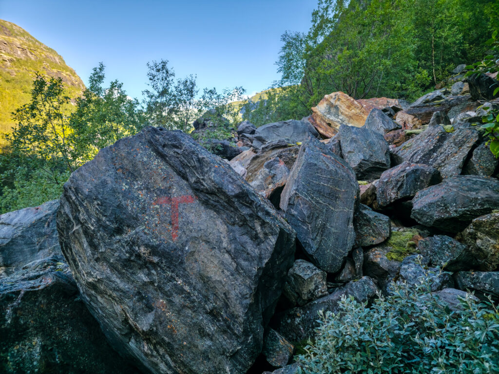 Det er utrolig å se størrelsen på enkelte av steinene som en gang i tiden har kommet ned fra fjellet