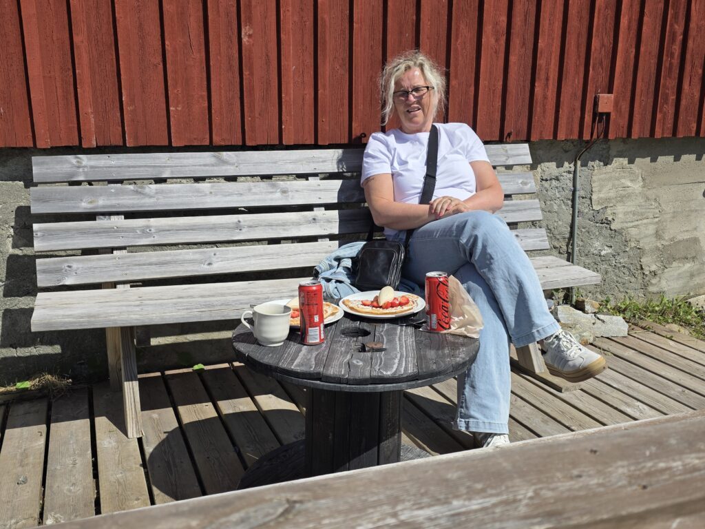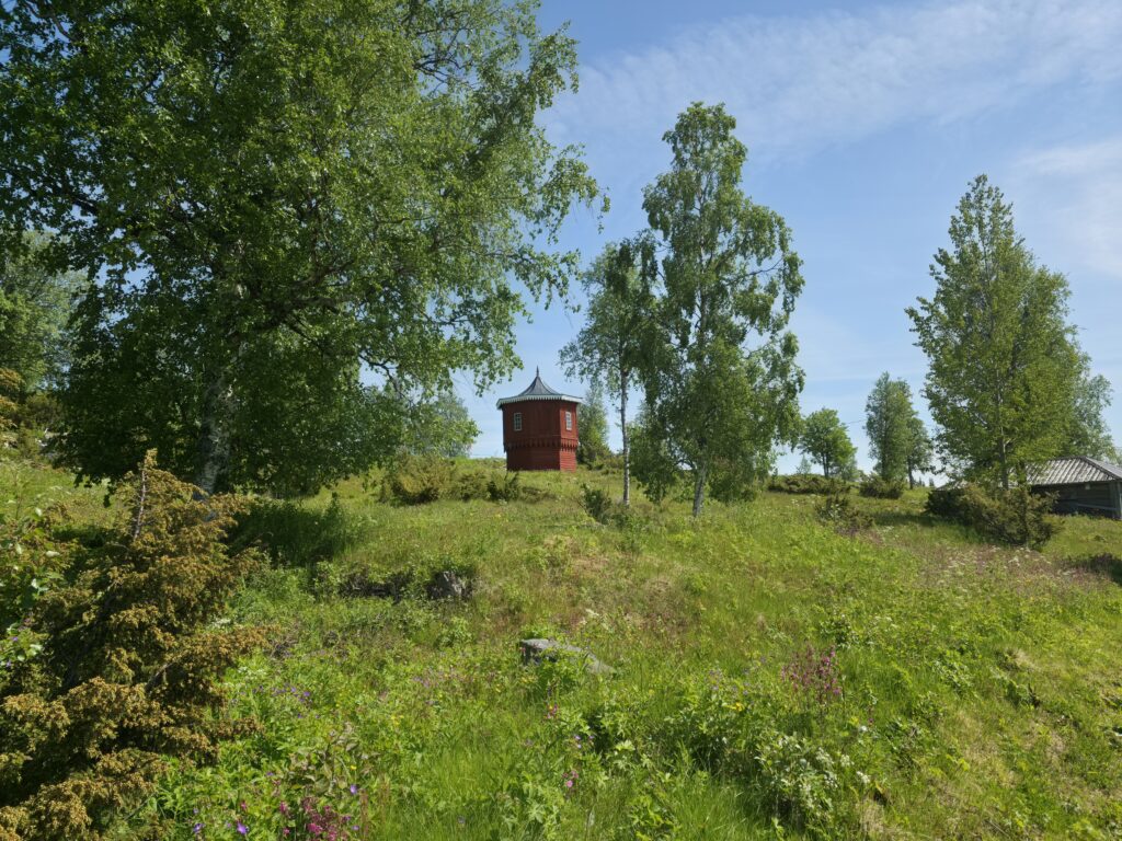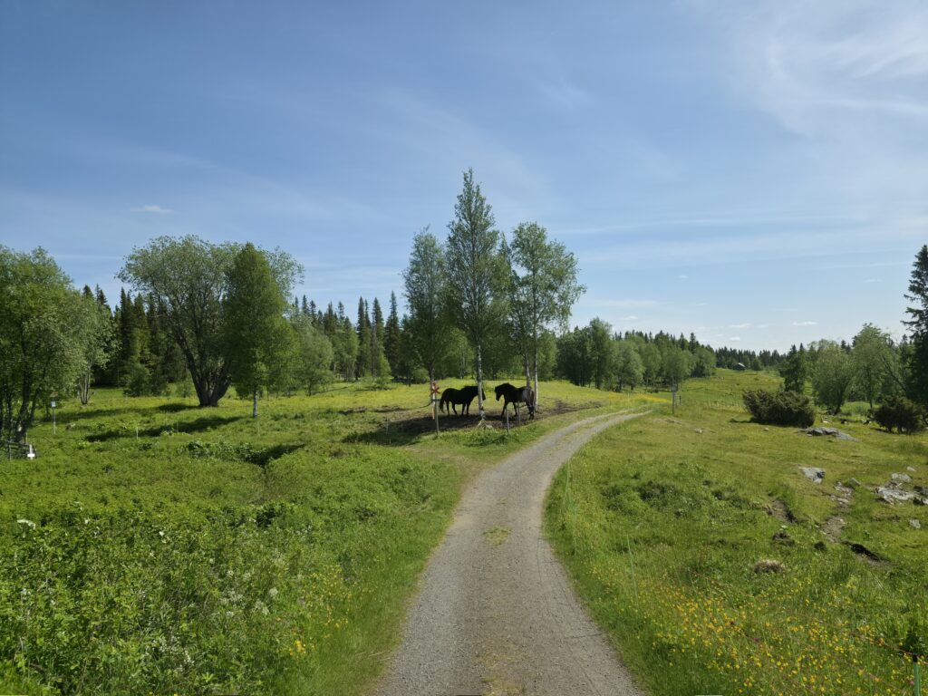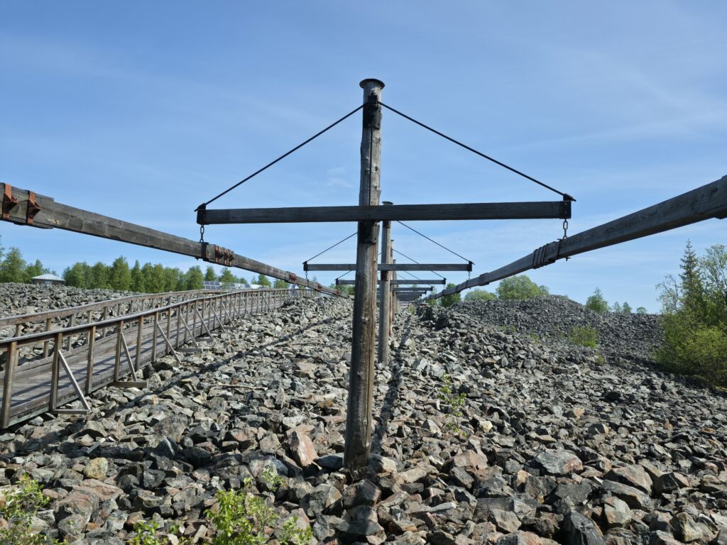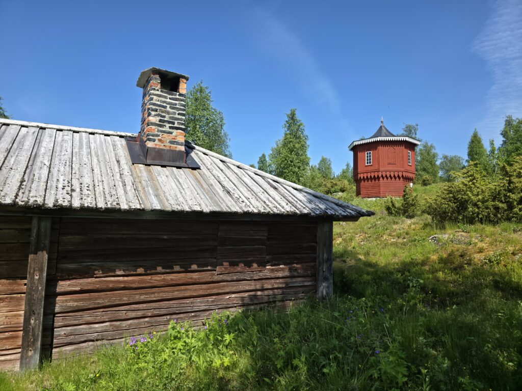 Vi svingte av fra E 14 ved Björnänge. Åre-Bjørnen heter dette skianlegget. Det lå langs veien inn til Fruå gruve. Fjellet i bakgrunnen heter Åreskutan. Toppen rager 1420 meter over havet. Det går gondolbane nesten helt til topps. Sveriges høyest beliggende kafé, Toppstugan befinner seg på toppen av ÅreskutanDen lange rørformede vannkanalen av tre kalles for en tretub. Den ledet vannet fra elva Fröån til gruvens vanndrevne maskinsystem. Vannet fra tretuben ble brukt til å drive et gigantisk vannhjulVannet ble ledet inn i vannhjulsbygningen. Inne i dette huset står det nå et stort vannhjul. Det har en diameter på 9,5 meter. I 1859, da hjulet ble konstruert var det to slike vannhjul i bygningen. Det ene drev lensepumper i Dronninggruven, det andre heiser i gruvesjaktene. Vannhjulene var i bruk til 1916 da elektriske kraftløsninger overtok jobbenEt sinnrikt energioverføringssystem, den 200 meter lange stanggangen mellom vannhjulshuset og pumpehusetKraften fra vannhjulet ble overført til en 200 meter lang stanggang. Stanggangen var en slags «kraftledning» av tre og jern. Bevegelsen i stanggangen ble overført til pumper eller blåsebelger. Legg merke til ansamlingen av de verdiløse steinmassene som på svensk kalles «gråberg». Gråberget inneholdt normalt 2-3 prosent kobber. I disse steinene er det nok fortsatt en kvart prosent med gjenværende kobberStanggangen endte i dette pumpehuset. Alt vann fra gruvene samlet seg på 90 meters dyp i Dronningsjakten under pumpehuset. Dronningsjakten var oppkalt etter Sofia Magdalena, kona til kong Gustav 3. Dronningsjakten sto i forbindelse med de andre gangene i gruva. Fra sjakta ble vannet pumpet opp fra gruvegangene. Historien vil ha det til at klokkene i Åre gamle kirke en gang ble fraktet opp til gruvene. Baktanken med det var at den intense klangen fra klokkene skulle skremme onde makter ut av gruvegangeneEi av smiene på bruket. I bakgrunnen den spesielle bygningen PivånFlotte omgivelser ved Frøå gruveRaststugan er en av de eldste bygningene på bruket. Den ble bygget på 1770-tallet. Bygningen ble opp gjennom årene brukt til ulike formål. Som butikk tidlig på 1900-tallet, som matsal for arbeiderne og som skolestueI forbindelse med nysatsingen tidlig på 1900-tallet bygget den svenske staten et hotell på Frøå. Hotellet sto ferdig i 1913. Bygningen med flere etasjer huset prominente gjester som ingeniører, geologer, arbeidsledere og andre spesialister. Hotellet hadde den gang nymoderne fasiliteter som strøm, rennende vann, elektrisitet, vannklosett og telefon. Hotellet rommet også postkontor, skolerom og matsal for arbeidere. Da bedriften gikk konkurs ble byggningen plukket fra hverandre og solgt på auksjonArbeidsfolkene på FrøåPivån ble oppført på 1860-tallet. Bygningen hadde åtte sider og flere hensiktsmessige vinduer. I Pivån fantes et maskineri for omkobling av stålkabler som ble brukt til å heise malm fra gruvene. I Pivån fikk stålkablene ny retning ut til de ulike gruvesjaktene der oppgaven var å dra malmvogner eller heise malmtønner. Energien til arbeidet ble levert av vannkraften som drev vannhjuleneKaffi og vafler i solveggen på Bergstua. I gamle dager var det langt til arbeidsplassen. Gruveselskapet bygget et overnattingsbygg for ukependlere. Det var bergstuer både i Frøå og på Huså. Bergstua på Frøa ble revet i 1920. Det nye bergstuebygget fra 1990 fungerer nå som restaurantHusmannsplassen Sellstedstorpet var den siste permanente bosetningen på Frøa. Sellstedstorpet var bosatt fram til 1971 av søskenparet Lars og Alma. Da Lars døde flyttet Alma på eldrehjemRundt år 1850 bodde om lag 600 personer med familie på gruveselskapets eiendommer. Småbrukene huset flere hundre kyr, sauer og og geiter. Det pågikk selvbergning til egen hushold. Høy som vinterfôr til dyra og den viktige poteten til menneskene. Tilgangen på korn var heller dårlig. I vanskelige tider (uår) hjalp gruveselskapet de ansatte med billig korn. Totalt sett var det rundt 120 bebodde småbruk på Huså og Frøå. 17 av småbrukene lå ved Fröå gruveDet er gode muligheter for fjellvandring i området. Mange av de som besøkte Bergstua og Frøå var fotturister. Her passerer stien SellstedstorpetDen gamle torpstugan på Sellstedstorpet. Huset er sannsynligvis fra 1820-tallet. Gruvearbeiderne fikk muligheten til å leie et lite jordstykke. Gruveselskapet bidro gjerne med hjelp til byggingen av husene på småbruket. Dette som et ledd i datidens personalpolitikk. Det var viktig å trekke gode arbeidsfolk til gruveneFröåtjärn var en viktig del av vannsystemet på Frøå. Vann fra elva ble ledet til tjernet slik at Frøå gruve hadde et bufferlager av vann i perioder med lav tilgang på vann. Fra Fröåtjärn ble vannet ledet via tretuben til de store vannhjuleneDen rørformede trekanalen, tretuben, ledet vannet fra tjernet til vannhjulene. Föreningen Fröå Gruvor ble stiftet i 1984. Foreningen drifter i dag området. Målsetningen er å bevare de tekniske innretningene, redskapene, bygningene og kulturhistorien til gruven og området. Åre kommune eier arealet i Fröå-området.Overskuddsvann fra Frøåtjern