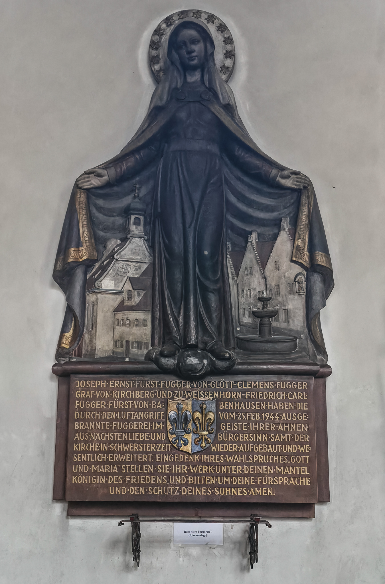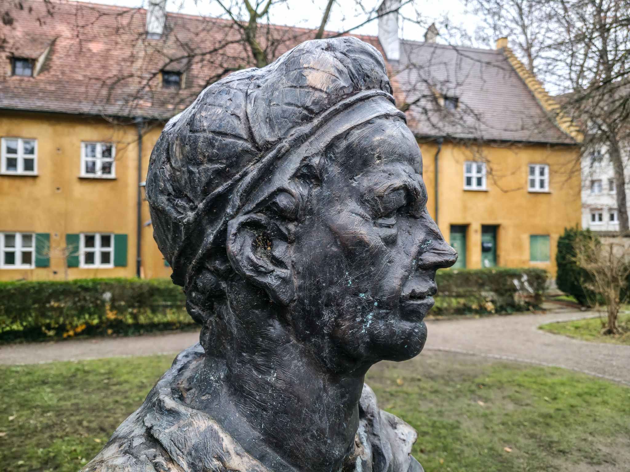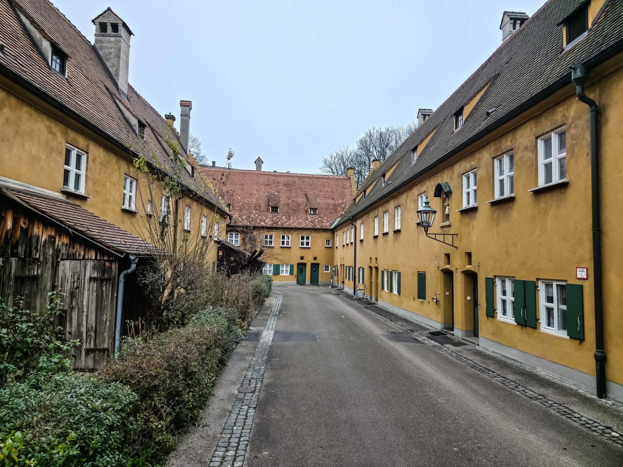 Området nær det offisielle inngangspartiet i FuggerreiPlaketten på veggen markerer Fuggereis offisielle stiftelsesdato, 23. august 1521. Denne dagen undertegnet Jakob Fugger dokumentet som etablerte Fuggerei som en stiftelse for all framtid. Målet var å gi fattige katolikker i Augsburg et verdig sted å bo, og tiltaket ble sett på som en kristen handling som kunne bidra til frelse. Siden Jakob Fugger ikke hadde egne livsarvinger, ble dokumentet både signert og beseglet av ham selv og nevøene Ulrich, Hieronymus og RaymundAugsburg var en av de mest folkerike byene i Det hellige romerske riket. I 1521 hadde byen rundt 30 000 innbyggere, en befolkning som spente fra tiggere, dagarbeidere og tjenere til håndverkere, handelsmenn og byens elite. Hele tretti prosent av innbyggerne var knyttet til vevindustrien, byens viktigste næringer. På denne tiden bodde det omkring 300–350 mennesker i Fuggerei. Bildet henger i Fuggerei-museet i AugsburgI 1521 ble også Augsburg rammet av pest. Det påfølgende året opprettet byen et eget almissekontor for å hjelpe fattige innbyggere. Tigging ble regulert, og det ble en kommunal oppgave å ta vare på dem som falt utenfor samfunnet. Bildet henger i Fuggerei-museet i AugsburgJakob Fugger, rikmannen som ønsket å dele noe av den enorme formuen han forvaltet med byens fattige, er hedret med en bronsestatue i Fuggerei‑parken. Skulpturen er laget av kunstneren Hans LadnerI dag bor det rundt 150 mennesker i de 67 bygningene i Fuggerei, både par, enslige og familier. For å få bolig her må man ha bodd minst to år i Augsburg og være medlem av den katolske kirken. Den årlige leiesummen er som på 1520-tallet, én rhinsk gylden i året, tilsvarende mindre enn en euro i dagens valutaFuggerliljen er familieemblemet til den viktigste delen Fugger‑slekten. Det har vært brukt siden middelalderen. Symbolet består ofte av ei gullfarget lilje på blå bakgrunn. Emblemet fungerte som markør for familiens sterke posisjon i Augsburg kan idag fortsatt sees på flere bygninger i FuggereiFlott arkitekturOchsen Gasse er navnet på en av de åtte gatene i Fuggerei. Gaten munner ut ved porten Ochsentor, den eneste av de sju bydelsportene som holdes åpen etter klokken 22.00. Her slipper portvakten beboerne inn eller ut mot en symbolsk pengesumFuggerei tiltrekker seg flere hundre tusen turister hvert år, og besøkende fra hele verden bidrar til rundt en tredel av inntektene som trengs for å drifte anlegget. Beboerne la stor vekt på å holde området ryddig og velsteltMange av bygningene har sin egen lille hellige «beskytter» i en nisje på veggenInformasjonstavlen skjuler nedgangen til en godt bevart underjordisk bunker. Den ble bygget i 1943 for å beskytte Fuggereis beboere under de alliertes luftangrep. Da Augsburg ble bombet i februar 1944, søkte rundt 200 mennesker tilflukt her. I dag huser bunkeren en utstilling som skildrer ødeleggelsene og den senere gjenoppbyggingen av FuggereiMetallindustrien og våpenproduksjonen fikk stor betydning for Augsburg i årene før krigen. Fram til 1945 produserte Messerschmitt-konsernet rundt 35 000 ME 109-kampfly ved fabrikker i Augsburg og andre tyske byer. Den allierte bombingen natt til 26. februar 1944 rammet Augsburg med voldsom kraft. Store deler av sentrumskjernen ble jevnet med jorden, 730 mennesker mistet livet, og minst to tredeler av Fuggerei ble ødelagt. Bare få dager senere besluttet innbyggerne og ledelsen i Fuggerei at bydelen skulle gjenreises. Bildet henger i Fuggerei-museet i AugsburgWeltkriegesbunker med museum i FuggerreiRundturen går mot slutten. Vi beveger oss nedover mot hovedinngangen og MarkuskircheMarkuskirche ligger inne i Fuggerrei. Kirken ble bygget på begynnelsen av 1580-talletMarkuskirche ble bombet 25.februar 1944. Kirkebygget ble gjenreist i etterkant av krigen. Fuggerslekten bidro med midler til gjenoppbyggingen Kirken er enkel i formen, men rik på symbolikk. Fuggerei var ikke bare et sosialt prosjekt, men også et uttrykk for kristen nestekjærlighetI de laveste sosiale sjiktene var grensene mellom fattige og nødlidende ofte flytende. Selv mennesker som hadde arbeid, kunne leve i dyp nød. Da Fuggerei ble opprettet, var et av hovedmålene å hjelpe de «skjulte fattige», arbeidsføre personer som likevel ikke klarte å forsørge seg selv. Dette var folk som ønsket å klare seg uten å tigge, men som trengte et trygt og verdig sted å boFranz Mozart, som var murer av yrke og oldefar til Wolfgang Amadeus Mozart, bodde i flere år i Mittlere Gasse 14 i Fuggerei. Han er i dag en av de mest kjente beboerne fra bydelenFuggerei har et gjennomført og harmonisk uttrykk. De gule bygningene med grønne dører og vindusskodder gir området et varmt og særpreget uttrykk. Mange av husene er dessuten delvis dekket av klatreplanterAdministrasjonsbygningen i Fuggerei fungerer som møteplass for Fugger‑stiftelsen. Her samles representanter for de tre gjenlevende grenene av Fugger‑familien til sine møter. I 1950 ble Hochstetter Oriel, et lite, utspringende karnappvindu, satt opp på fasaden. Karnappet er et dekorativt innslag i den ellers så enkle arkitekturen i FuggereiMarkusbrunnen på Jakobsplatz. En av flere innganger til Fuggerrei skimtes i bakgrunnen
