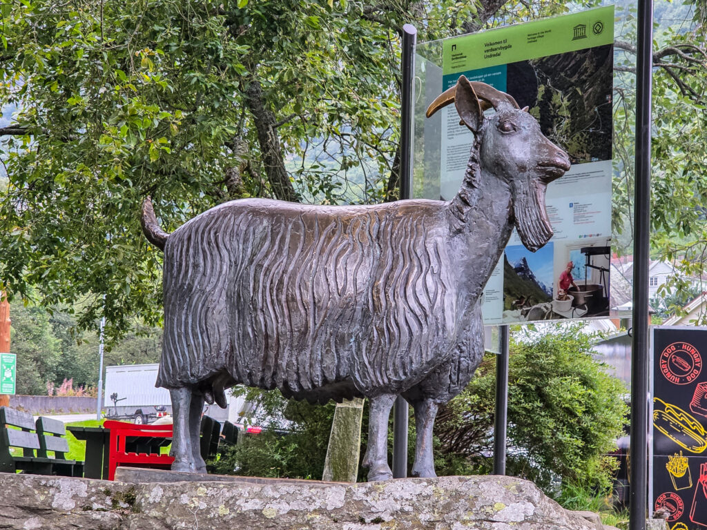 Undredal har om lag 350 geiter. Denne, på sokkel, var en gave fra husmorlaget i bygdaGeitefjøs med melkestall på vei nedover til UndredalTre bønder fra bygda etablerte dalens eget stølsysteri. Det har blitt produsert kvit og brun ost i Undredal langt tilbake i tidYsteriet produserer upasturisert ost av typene Sognakvitost og brun og hvit Undredal. Hvitosten leveres i fire ulike mogningsgrade, fra nylagra til eldgammel. Flere av ostene fra ysteriet i Undredal er blitt premiert og har fått heder og ære i konkurranser som World Cheese Awards og Det norske måltidUndredalselvi følger veien og dalføret nedover mot fjordenDette flotte bruket lå fint plassert ved elva, like før du ankommer sentrum i bygdaVi hadde leid oss et rom i KårestovaMaritimt miljø. Undredal ligger som en liten isolert oase ved AurlandsfjordenUndredal er omgitt av bratte fjell. Flere av toppene er rundt 1300 meter høyeNatur, kultur og friluftsliv går hånd i hånd i vakre UndredalDe eldste delene av stavkirka i Undredal er fra 1147. Kirka som fortsatt er i normal bruk har sitteplass til 40 menneskerVakker VestlandsnaturUndredølene hevder selv at de har Europas minste brannstasjonSmå driftsbygninger lå vilkårlig plassert i terrengetFlott vær, og vill og vakker natur. Takk til Undredal for denne gang…