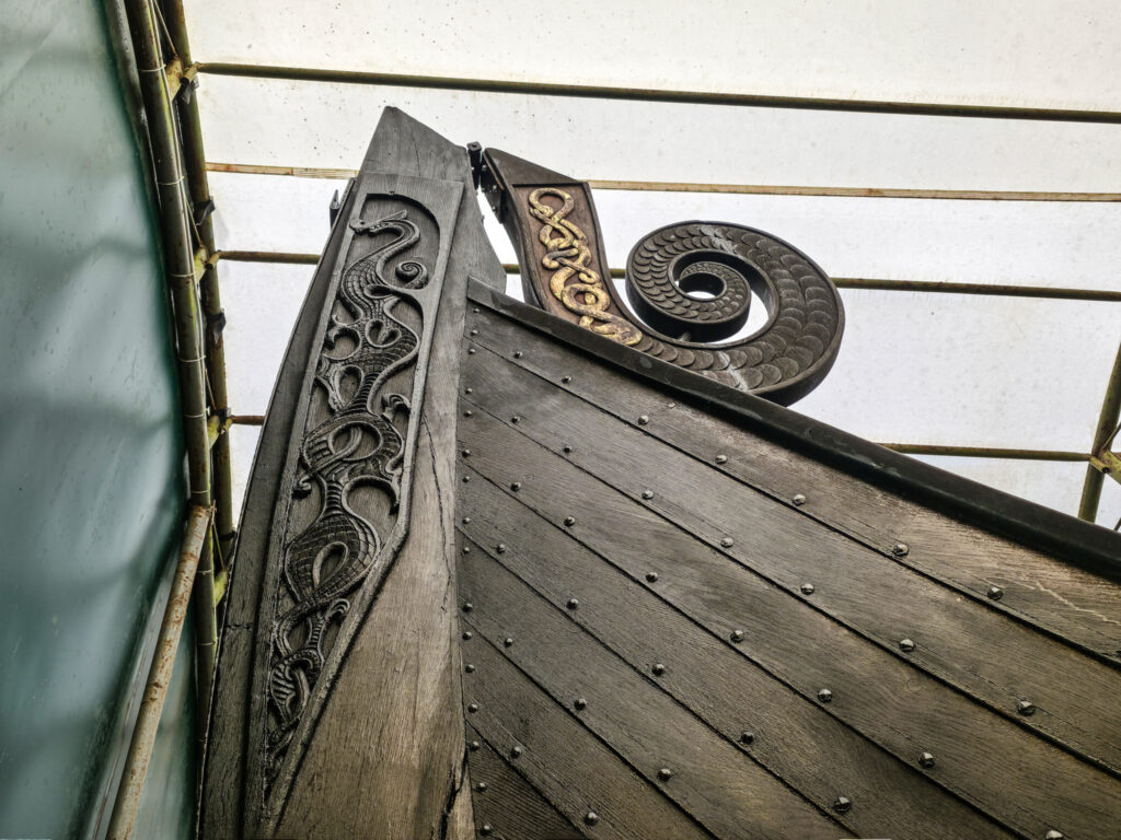 Dragehodet i baugen skal være inspirert av en runestein fra Husaby kirke. Når skipet ligger i vinteropplag er dragehodet satt i «hvilestilling»