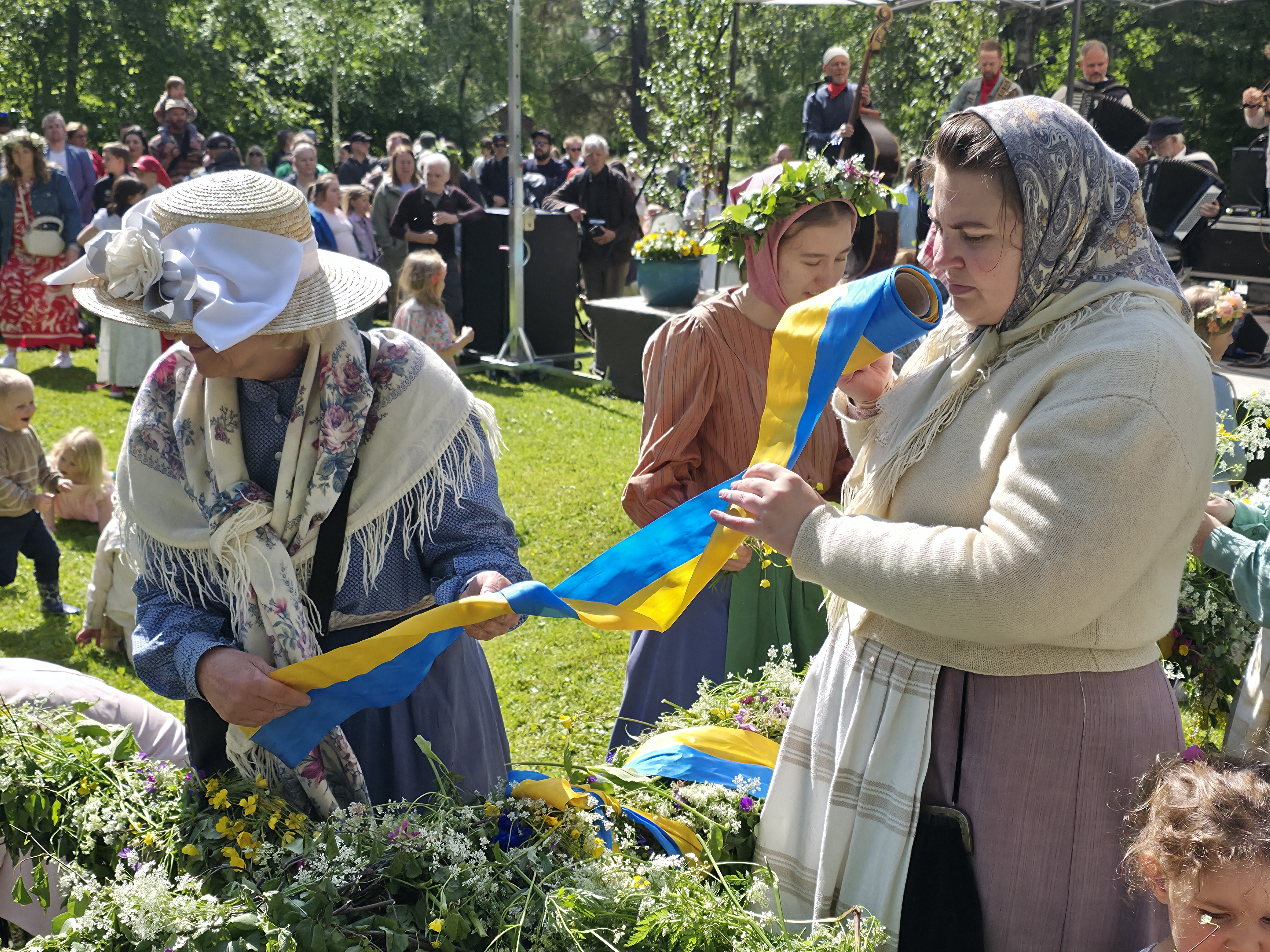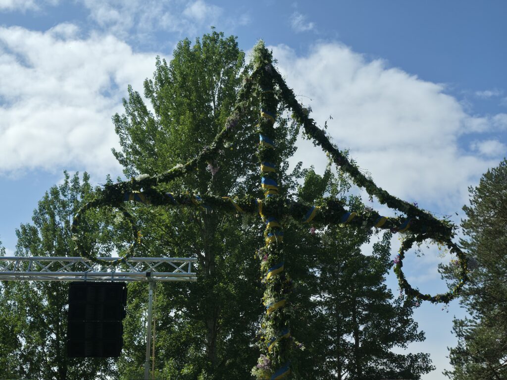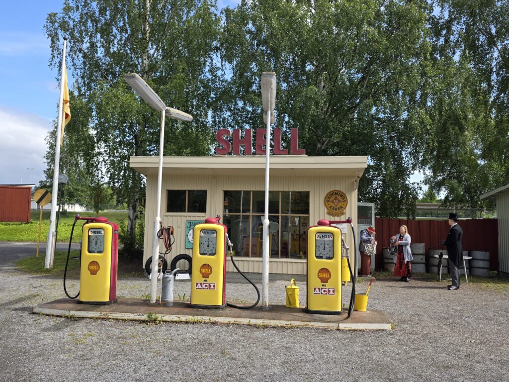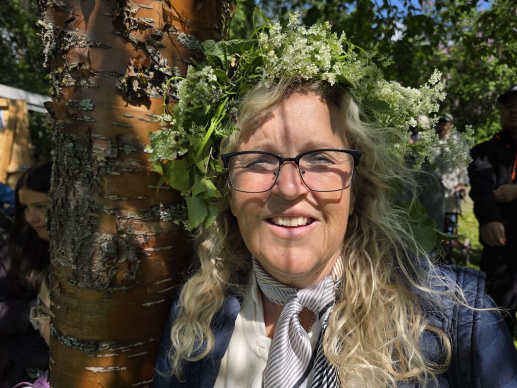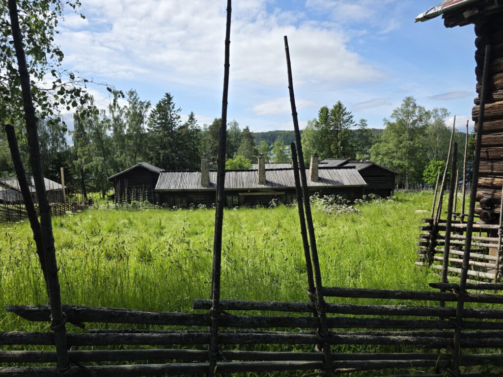 Dagen startet med regn og gråvær, men etter hvert kom sola framJ.P. Gulle-huset på Jamtli er en rekonstruert diversehandel fra 1895, og gir et levende innblikk i bylivet i Östersund på slutten av 1800-tallet. Huset er oppkalt etter kjøpmann Johan Petter GulleDe ansatte stilte smilende opp i tidsriktige kostymerLang kø for å få prøve det gammeldagse lykkehjuletUlike svenske bunaderKonsumbussen er fra 1950-tallet. Bussen var en rullende butikk som brakte varer og nyheter ut til bygdene i Jämtland. Den var i bruk i en tid da bilismen ennå ikke var utbredt og mange småbutikker ble lagt ned. Behovet for mobile tjenester ble dermed stortEsso-stasjonen er fra 1950-tallet, komplett med tidsriktige pumper, reklameskilt og interiørJamtli vartet både opp med tradisjonell folkemusikk og kjente svenske sanger De mer enn tusen år gamle Överhogdalsbonaderna er gjerne museets viktigste og mest verdifulle gjenstand. Tekstilene gir oss et innblikk i vikingtidens verdensbildeMotiver og symbolikk vekker fortsatt debatt. Enkelte er av den oppfatning at motivene skildrer kristningen av Härjedalen, mens andre ser dem som en framstilling av Ragnarok, verdens undergang i norrøn mytologi.De samiske jemtene har flokket seg rundt et nedfelt reinsdyr. Jämtland tilhører det sørsamiske området. I Jämtland finnes det flere samebyerMuseet har også en imponerende samling av historiske gjenstander og kunstverk. Her en jemtsk bonde som snart skal reise ut for å bytte varer med bønder på den norske siden av grensenDette gamle tinghuset kom opprinnelig fra Gärde i BrunfloVed Hammerdal kirke fantes det for hundre år siden rundt to hundre kirkestuer og staller. Folk som skulle besøke kirken kom gjerne langveisfra, og trengte hvile og overnatting før kirkebesøket. Dette bygget som er fra midten av 1800-tallet inneholder både stall og stueNostalgi og idyll i finværetI Sverige er det sterke tradisjoner knyttet til feiring av midtsommer. Jamtli i Östersund er det mest populære stedene i Jämtland for å feire midtsommer både for lokalbefolkningen og besøkendeHer bindes blomster på maistangenMidtsommeraften faller alltid på fredag mellom 19. og 25. juni. Den påfølgende lørdagen kalles midtsommerdag. Da holder de fleste butikkene stengt. Folk feirer hjemme eller i stugan (hytta). Vanlig midtsommermat er grillmat, kalvestek og sommersildMidtsommerstangen eller maistangen som den gjerne også kalles dekkes helt med løv og blomster. Maistangen er formet som et kors med to hengende ringer. Midtsommerfeiringen var opprinnelig knyttet til feiring av naturen og ønske om gode avlingerBlomsterkransen er bundet, og vi er klare for midtsommerfeiringMidtsommerstangen er på vei opp. Etterpå var det barnesanger og ringdans rundt stangenEn fin sommerdag er på hell. Orkesteret spiller kjente og ukjente sanger fra scenen mens lange rekker av feststemte mennesker danset og sang