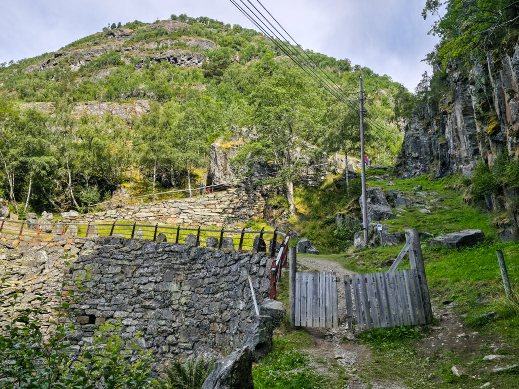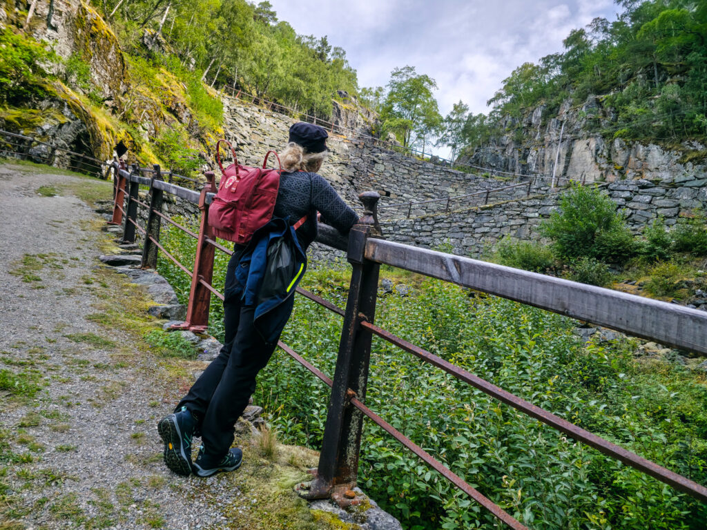 Det er godt med en pust i bakken. I bakgrunnen ser vi de mektige støttemurene. De høyeste er 12 meter