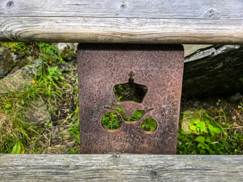 Symbolet på rekkverksstolpene i Vindhella brukes idag på moderne skilt langs Kongeveien